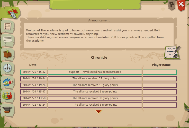 Players can choose to either create an alliance of their own or join another alliance made by someone else. Joining one made by someone else often has it's advantages such as instant access to possibly high level bonuses, a higher level smithy and more. On the other hand, joining another alliance means the player won't have full control and may have to wait a long time before they are promoted in the alliance, granting them administrative powers.